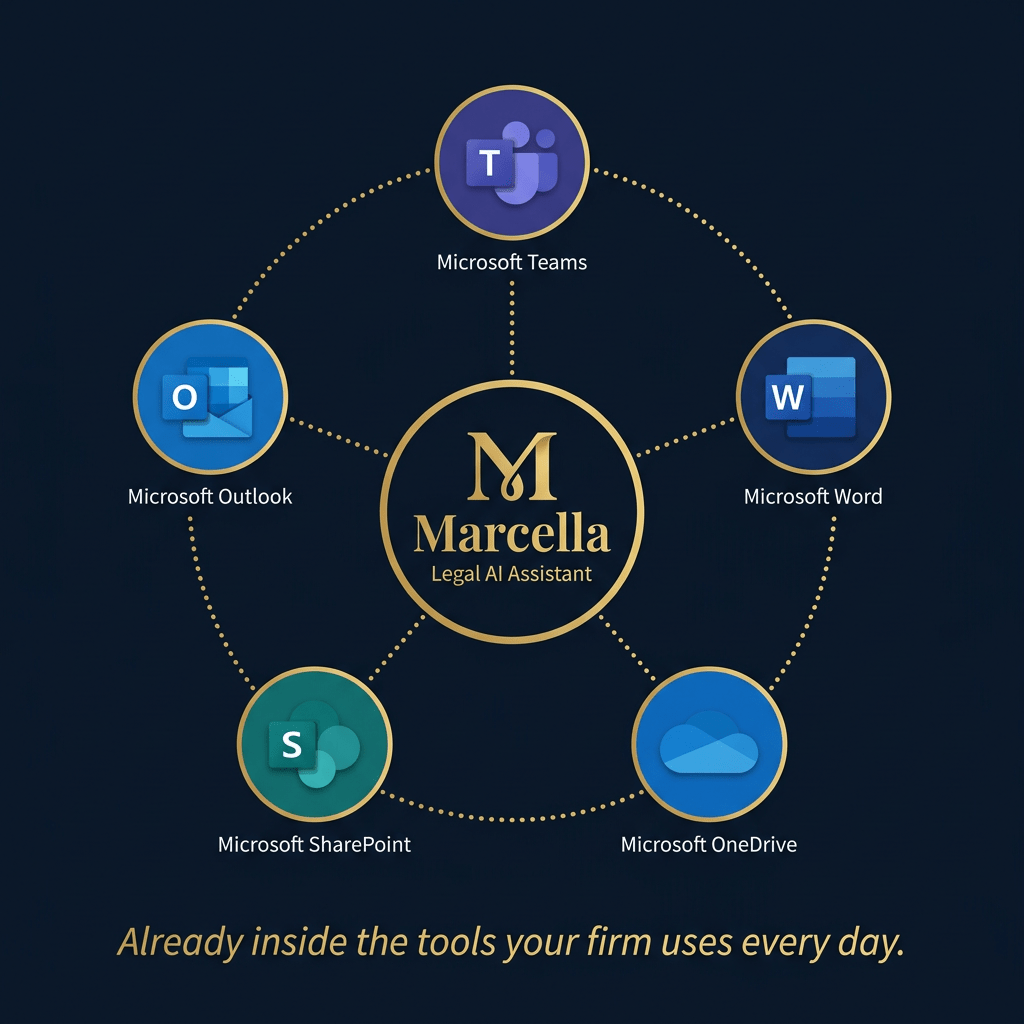 Most legal AI asks you to adopt a new platform. Marcella simply wakes up inside the Microsoft 365 tools your firm uses all day.